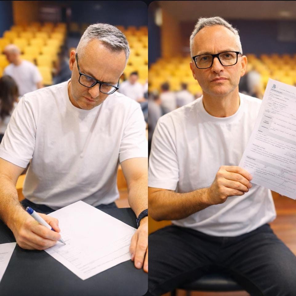 Olha ele aí: o nosso guerreiro, dedicado vigorense, o nosso monitor, DEPOIS secretário do curso, NOMEADO pela PRIMEIRA vez em 2023, GUARDA MUNICIPAL de São Leopoldo, e hoje, 20 fevereiro de 2026, assinando a POSSE da SEGUNDA NOMEAÇÃO como POLICIAL PENAL, na SUSEPE. DAITON RAI HENNIG MUNDT