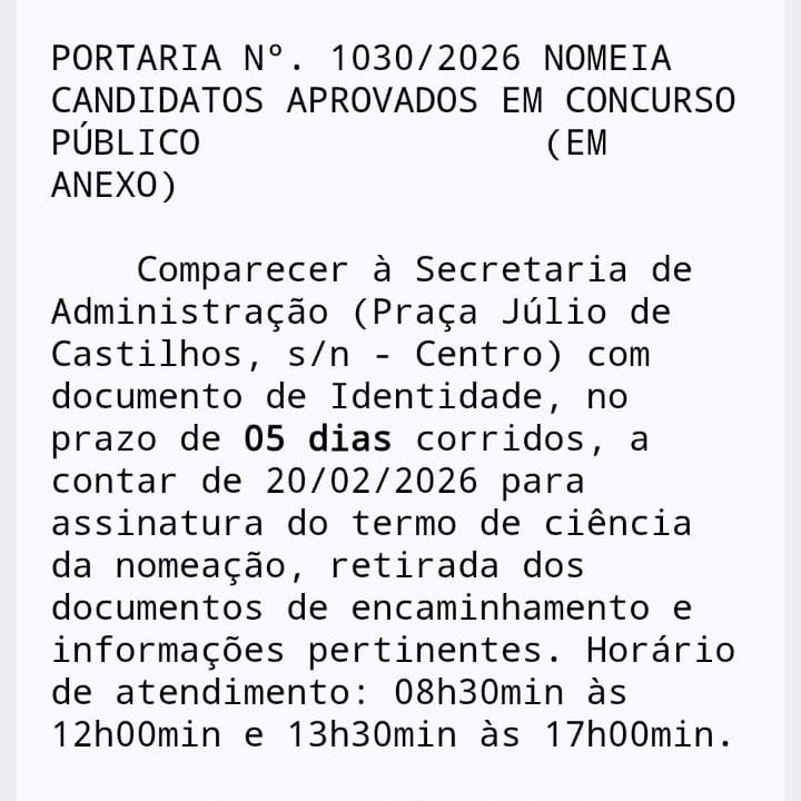 NOMEADO ,hoje, 09/02/2026, no cargo de ASSISTENTE ADMINISTRATIVO, na FEPAM- FUNDAÇÃO ESTADUAL DE PROTEÇÃO AMBIENTAL