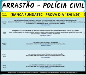 ARRASTÃO SEMANAL – turno noite – DE 12 até 16/JAN/2026 + PRÉ-PROVA 17/JAN – PRESENCIAL